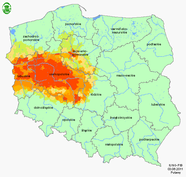 W pierwszym okresie raportowania tj. od 1 kwietnia do 31 maja 2011 roku, stwierdzamy zagrożenie wystąpienia suszy rolniczej na obszarze Polski. Wartości Klimatycznego Bilansu Wodnego (KBW), na podstawie których dokonywana jest ocena stanu zagrożenia suszą, są na większości obszarów Polski ujemne. .....