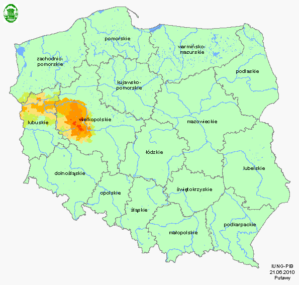 W trzecim okresie raportowania tj. od 21 kwietnia do 20 czerwca 2011 roku, stwierdzamy zagrożenie wystąpienia suszy rolniczej na obszarze Polski. Wartości Klimatycznego Bilansu Wodnego (KBW), na podstawie których dokonywana jest ocena stanu zagrożenia suszą, są w całej Polsce ujemne. Obszar zagrożenia suszą (prezentowanym w poprzednim komunikacie) powiększył się we wszystkich kierunkach, w największym stopniu w kierunku wschodnim i południowo-wschodnim. .....