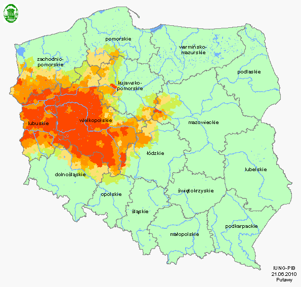 W trzecim okresie raportowania tj. od 21 kwietnia do 20 czerwca 2011 roku, stwierdzamy zagrożenie wystąpienia suszy rolniczej na obszarze Polski. Wartości Klimatycznego Bilansu Wodnego (KBW), na podstawie których dokonywana jest ocena stanu zagrożenia suszą, są w całej Polsce ujemne. Obszar zagrożenia suszą (prezentowanym w poprzednim komunikacie) powiększył się we wszystkich kierunkach, w największym stopniu w kierunku wschodnim i południowo-wschodnim. .....