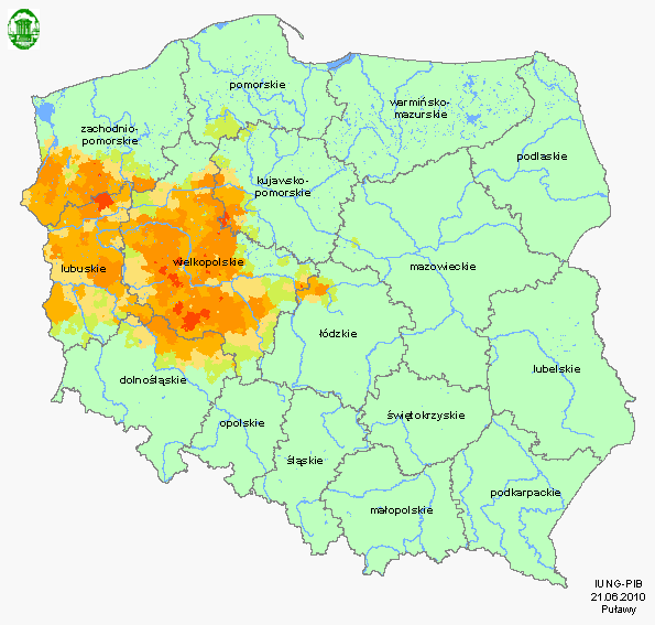 W trzecim okresie raportowania tj. od 21 kwietnia do 20 czerwca 2011 roku, stwierdzamy zagrożenie wystąpienia suszy rolniczej na obszarze Polski. Wartości Klimatycznego Bilansu Wodnego (KBW), na podstawie których dokonywana jest ocena stanu zagrożenia suszą, są w całej Polsce ujemne. Obszar zagrożenia suszą (prezentowanym w poprzednim komunikacie) powiększył się we wszystkich kierunkach, w największym stopniu w kierunku wschodnim i południowo-wschodnim. .....