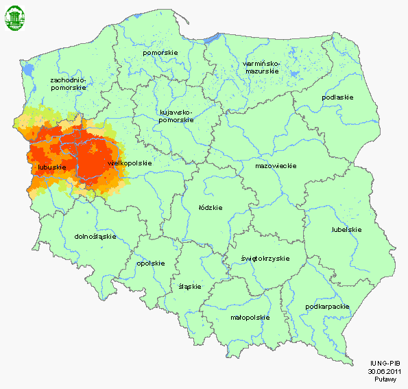 W czwartym okresie raportowania tj. od 1 maja do 30 czerwca 2011 roku, stwierdzamy zagrożenie wystąpienia suszy rolniczej na obszarze Polski. Wartości Klimatycznego Bilansu Wodnego (KBW), na podstawie których dokonywana jest ocena stanu zagrożenia suszą, są w dalszym ciągu ujemne prawie w całej Polsce (z wyjątkiem Zachodnich Beskidów). .....