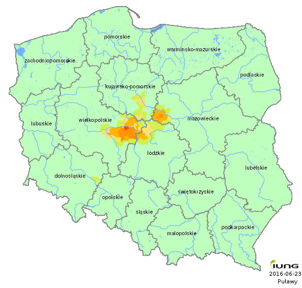 Instytut Uprawy Nawożenia i Gleboznawstwa – Państwowy Instytut Badawczy w Puławach, zgodnie z wymogami Obwieszczenia Ministra Rolnictwa i Rozwoju Wsi opracował wartości klimatycznego bilansu wodnego dla wszystkich gmin Polski (2478 gmin) oraz w oparciu o kategorie gleb określił w tych gminach aktualny stan zagrożenia suszą rolniczą dla następujących upraw: zbóż ozimych i jarych, kukurydzy na ziarno i na kiszonkę, rzepaku i rzepiku, ziemniaka, buraka cukrowego, chmielu, tytoniu, warzyw gruntowych, krzewów i drzew owocowych, truskawek oraz roślin strączkowych. .....