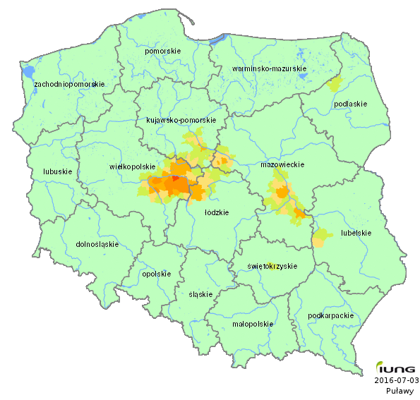 Instytut Uprawy Nawożenia i Gleboznawstwa – Państwowy Instytut Badawczy w Puławach, zgodnie z wymogami Obwieszczenia Ministra Rolnictwa i Rozwoju Wsi opracował wartości klimatycznego bilansu wodnego dla wszystkich gmin Polski (2478 gmin) oraz w oparciu o kategorie gleb określił w tych gminach aktualny stan zagrożenia suszą rolniczą dla następujących upraw: zbóż ozimych i jarych, kukurydzy na ziarno i na kiszonkę, rzepaku i rzepiku, ziemniaka, buraka cukrowego, chmielu, tytoniu, warzyw gruntowych, krzewów i drzew owocowych, truskawek oraz roślin strączkowych. .....