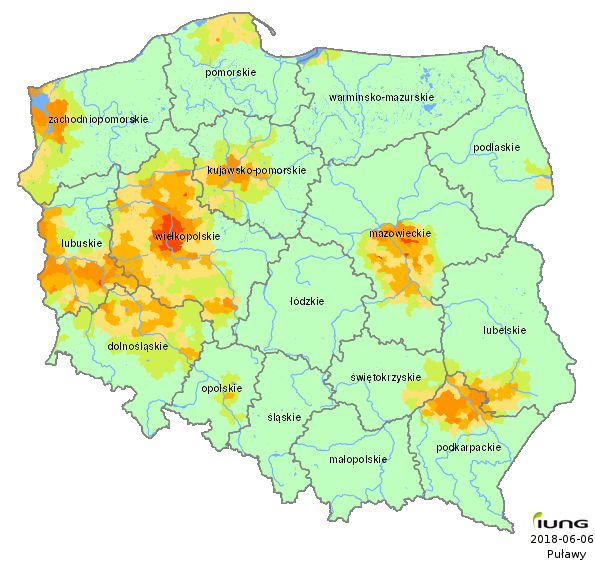 IUNG-PIB zgodnie z wymogami Obwieszczenia opracował wartości klimatycznego bilansu wodnego dla wszystkich gmin Polski (2478 gmin) oraz w oparciu o kategorie gleb określił w tych gminach aktualny stan zagrożenia suszą rolniczą dla następujących upraw: zbóż ozimych i jarych, rzepaku i rzepiku, buraka cukrowego, krzewów i drzew owocowych oraz truskawek. .....
