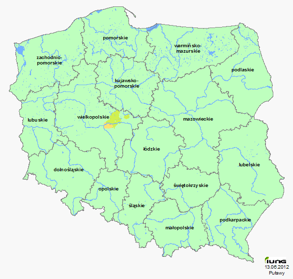 In the second reporting period i.e. from 11 April to 10 June 2012, we confirm a threat of agricultural drought in some regions of Poland. The value of climatic water balance (CWB), on the basis of which the risk assessment of drought is calculated in most parts of areas in Poland was negative. .....