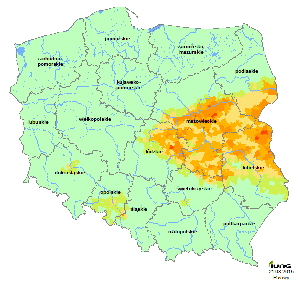 The Institute of Soil Science and Plant Cultivation - State Research Institute in accordance with an Act from the Minister of Agriculture and Rural Development has developed the climatic water balance for all Polish municipalities (3,064 municipalities), and based on the soils categories have identified in those municipalities the current agricultural drought risk for the following crops: winter and spring cereals, corn for grain and silage, oilseed rape and turnip rape, sugar beet, potatoes, hops, tobacco, field vegetables, shrubs and fruit trees and strawberries and legumes. .....