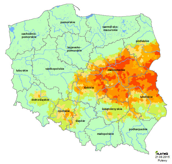The Institute of Soil Science and Plant Cultivation - State Research Institute in accordance with an Act from the Minister of Agriculture and Rural Development has developed the climatic water balance for all Polish municipalities (3,064 municipalities), and based on the soils categories have identified in those municipalities the current agricultural drought risk for the following crops: winter and spring cereals, corn for grain and silage, oilseed rape and turnip rape, sugar beet, potatoes, hops, tobacco, field vegetables, shrubs and fruit trees and strawberries and legumes. .....
