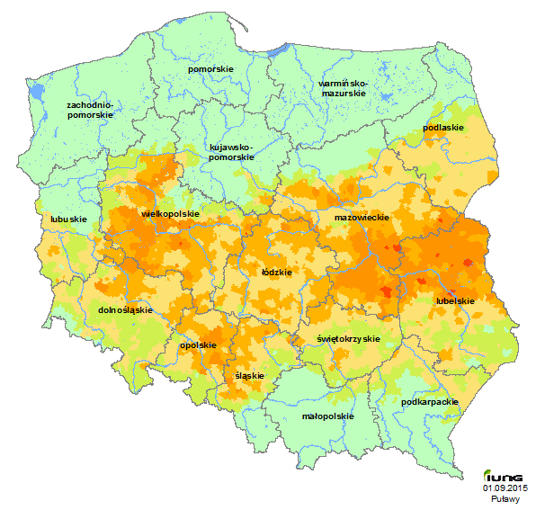The Institute of Soil Science and Plant Cultivation - State Research Institute in accordance with an Act from the Minister of Agriculture and Rural Development has developed the climatic water balance for all Polish municipalities (3,064 municipalities), and based on the soils categories have identified in those municipalities the current agricultural drought risk for the following crops: grain and silage maize, sugar beet, potatoes, hops, tobacco, field vegetables, shrubs and fruit trees and legumes. .....