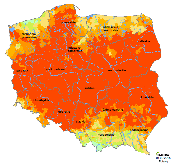 The Institute of Soil Science and Plant Cultivation - State Research Institute in accordance with an Act from the Minister of Agriculture and Rural Development has developed the climatic water balance for all Polish municipalities (3,064 municipalities), and based on the soils categories have identified in those municipalities the current agricultural drought risk for the following crops: grain and silage maize, sugar beet, potatoes, hops, tobacco, field vegetables, shrubs and fruit trees and legumes. .....