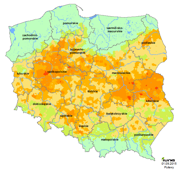 The Institute of Soil Science and Plant Cultivation - State Research Institute in accordance with an Act from the Minister of Agriculture and Rural Development has developed the climatic water balance for all Polish municipalities (3,064 municipalities), and based on the soils categories have identified in those municipalities the current agricultural drought risk for the following crops: grain and silage maize, sugar beet, potatoes, hops, tobacco, field vegetables, shrubs and fruit trees and legumes. .....