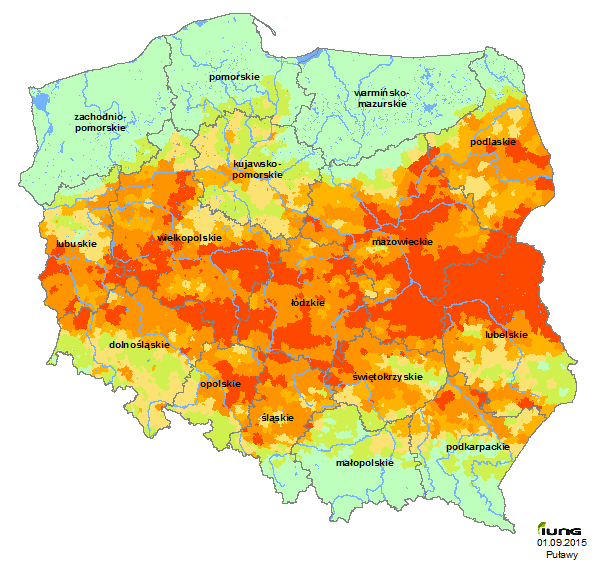 The Institute of Soil Science and Plant Cultivation - State Research Institute in accordance with an Act from the Minister of Agriculture and Rural Development has developed the climatic water balance for all Polish municipalities (3,064 municipalities), and based on the soils categories have identified in those municipalities the current agricultural drought risk for the following crops: grain and silage maize, sugar beet, potatoes, hops, tobacco, field vegetables, shrubs and fruit trees and legumes. .....