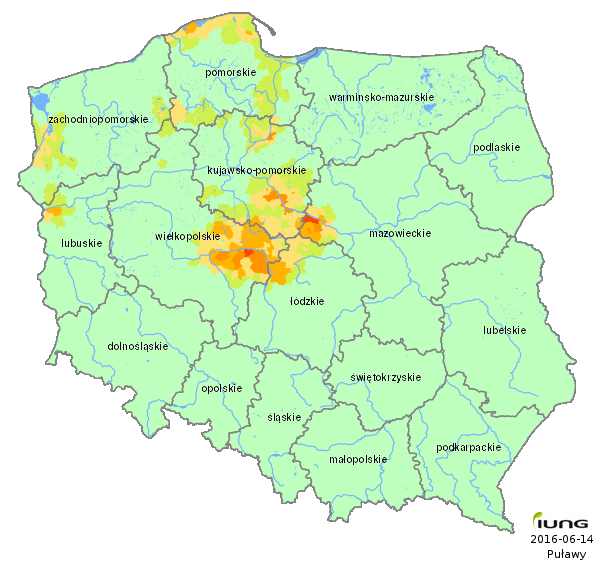 Instytut Uprawy Nawożenia i Gleboznawstwa – Państwowy Instytut Badawczy w Puławach, zgodnie z wymogami Obwieszczenia Ministra Rolnictwa i Rozwoju Wsi opracował wartości klimatycznego bilansu wodnego dla wszystkich gmin Polski (2478 gmin) oraz w oparciu o kategorie gleb określił w tych gminach aktualny stan zagrożenia suszą rolniczą dla następujących upraw: zbóż ozimych i jarych, rzepaku i rzepiku, buraka cukrowego, krzewów i drzew owocowych oraz truskawek za okres od 11 kwietnia do 10 czerwca 2016 roku. .....