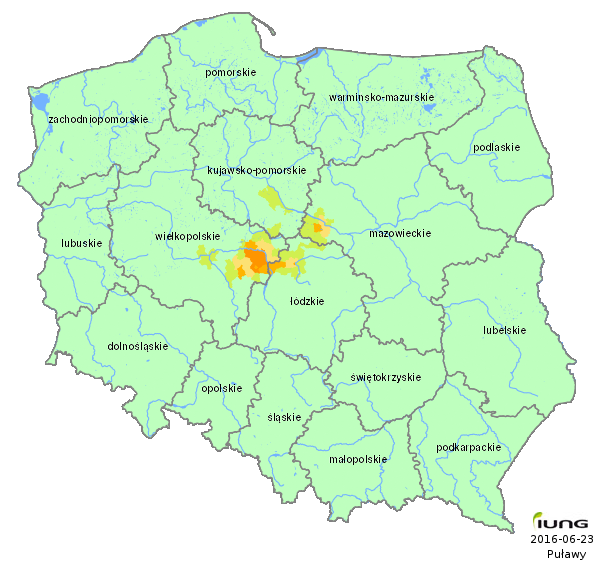 Instytut Uprawy Nawożenia i Gleboznawstwa – Państwowy Instytut Badawczy w Puławach, zgodnie z wymogami Obwieszczenia Ministra Rolnictwa i Rozwoju Wsi opracował wartości klimatycznego bilansu wodnego dla wszystkich gmin Polski (2478 gmin) oraz w oparciu o kategorie gleb określił w tych gminach aktualny stan zagrożenia suszą rolniczą dla następujących upraw: zbóż ozimych i jarych, kukurydzy na ziarno i na kiszonkę, rzepaku i rzepiku, ziemniaka, buraka cukrowego, chmielu, tytoniu, warzyw gruntowych, krzewów i drzew owocowych, truskawek oraz roślin strączkowych. .....