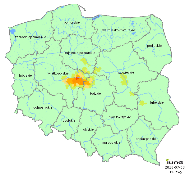 The Institute of Soil Science and Plant Cultivation – State Research Institute, in accordance with an Act from the Minister of Agriculture and Rural Development has developed the climatic water balance for all 2478 Polish local districts and, on the basis of soil categories, calculated the current risk of agricultural drought for the following crops: winter and spring cereals, grain maize and maize for silage, rape and turnip rape, potato, sugar beet hops, tobacco, ground vegetables, fruit shrubs and trees, strawberries and legumes. .....