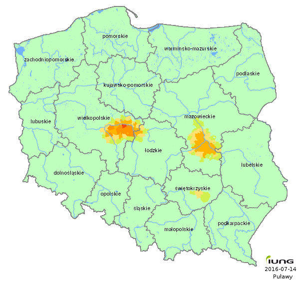 The Institute of Soil Science and Plant Cultivation – State Research Institute, in accordance with an Act from the Minister of Agriculture and Rural Development has developed the climatic water balance for all 2478 Polish local districts and, on the basis of soil categories, calculated the current risk of agricultural drought for the following crops: winter and spring cereals, grain maize and maize for silage, rape and turnip rape, potato, sugar beet, hops, tobacco, ground vegetables, fruit shrubs and trees, strawberries and legumes. .....
