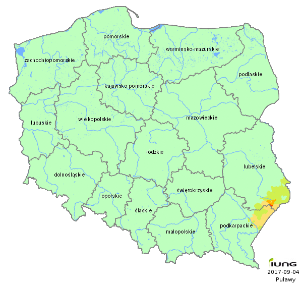 The Institute of Soil Science and Plant Cultivation – State Research Institute, in accordance with an Act of the Minister of Agriculture and Rural Development has developed the climatic water balance for all 2478 Polish local districts and, on the basis of soil categories, calculated the current risk of agricultural drought for the following crops: grain maize and maize for silage, potatoes, sugar beet, hops, tobacco, ground vegetables, fruit shrubs and trees, and legumes. .....
