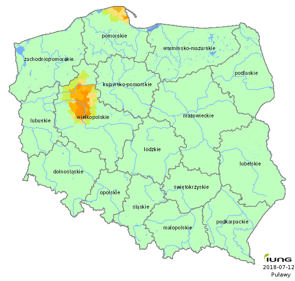 The Institute of Soil Science and Plant Cultivation – State Research Institute, in accordance with an Act of the Minister of Agriculture and Rural Development has developed the climatic water balance values for all 2478 Polish local districts (gminas) and, on the basis of soil categories, calculated the current risk of agricultural drought for the following crops: winter and spring cereals, maize for grain and maize for silage, rape and turnip rape, potato, sugar beet, hops, tobacco, ground vegetables, fruit shrubs and trees, strawberries and legumes (fabacea). .....