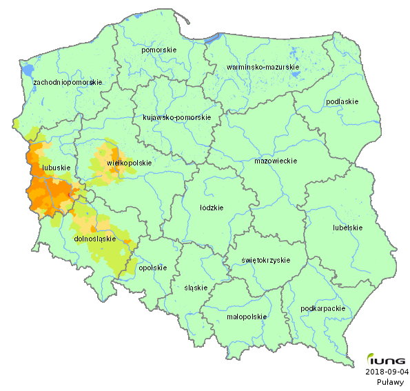 The Institute of Soil Science and Plant Cultivation – State Research Institute, in accordance with an Act of the Minister of Agriculture and Rural Development has developed the climatic water balance values for all 2478 Polish local districts (gminas) and, on the basis of soil categories, calculated the current risk of agricultural drought for the following crops: maize for grain and maize for silage, potato, sugar beet, hops, tobacco, ground vegetables, fruit shrubs and trees and legumes (fabacea). .....