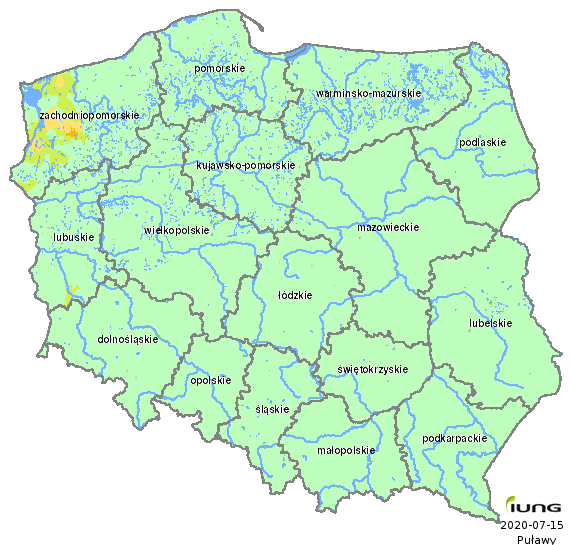 | Voivodeship (NUTS-2) | Total number of administrative districts | Number of the administrative districts under threat of drought | Percentage of administrative districts under threat of drought | Percentage of area under threat of drought |